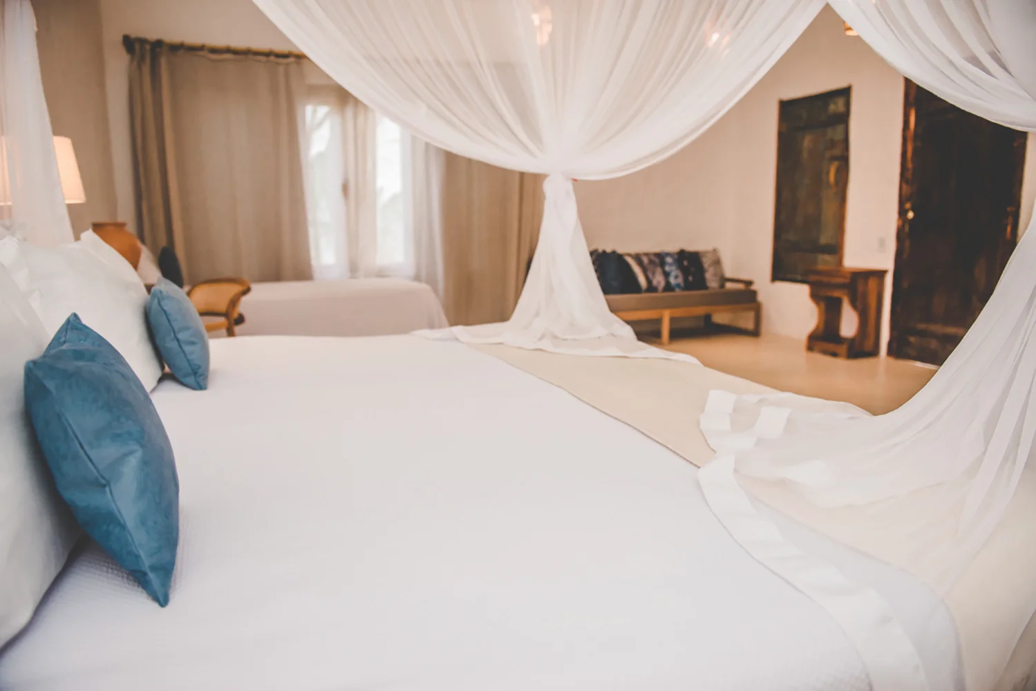 Suítes perfeitamente decoradas com tradicionais artigos de Trancoso e equipadas com os melhores itens para sua hospedagem. Localizadas no térreo, têm também uma varanda e vista para ao encantador jardim do hotel.