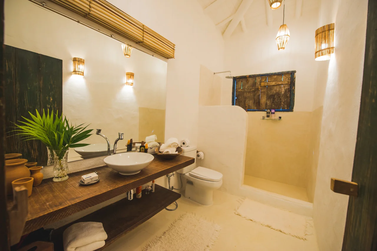 Suítes perfeitamente decoradas com tradicionais itens de Trancoso e equipadas com os melhores artigos para sua hospedagem. A espaçosa varanda oferece vista para o jardim.