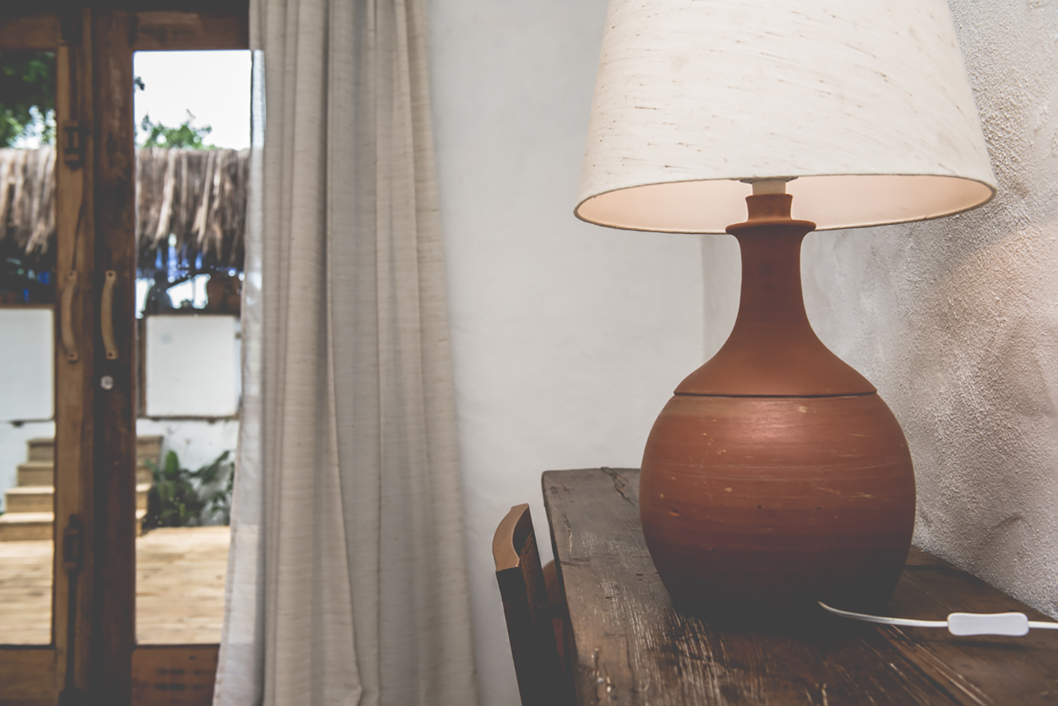 Charmosa e luxuosa suíte com decoração rústica inspirada nas tradições locais. A banheira de hidromassagem completa a experiência, assim como vista inigualável para o mar de Trancoso.